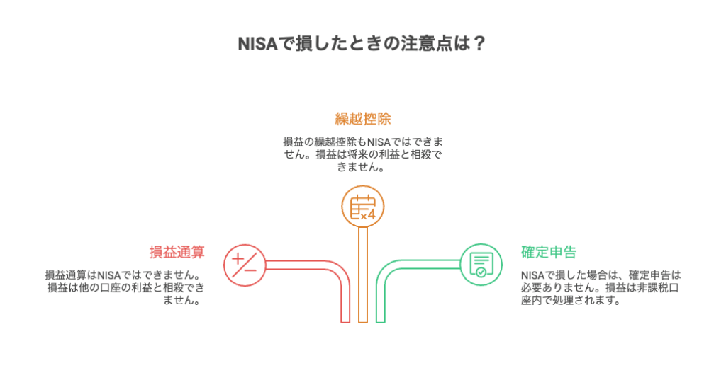 税制上、損失を翌年以降に繰り越して、課税所得と相殺できるのは課税口座に限定され、NISA口座での損失はその対象外です。