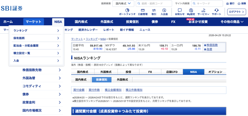 まずは、どの銘柄へ投資をするか、「NISA」→「ランキング」から探しましょう。