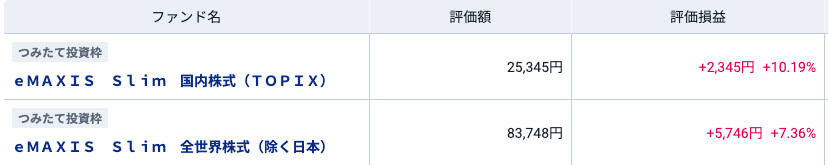 実際に、私は月々5,000円から、つみたてNISAを始めており、投資信託を日本株式と世界株式(日本除く)に分散して、投資をしています。