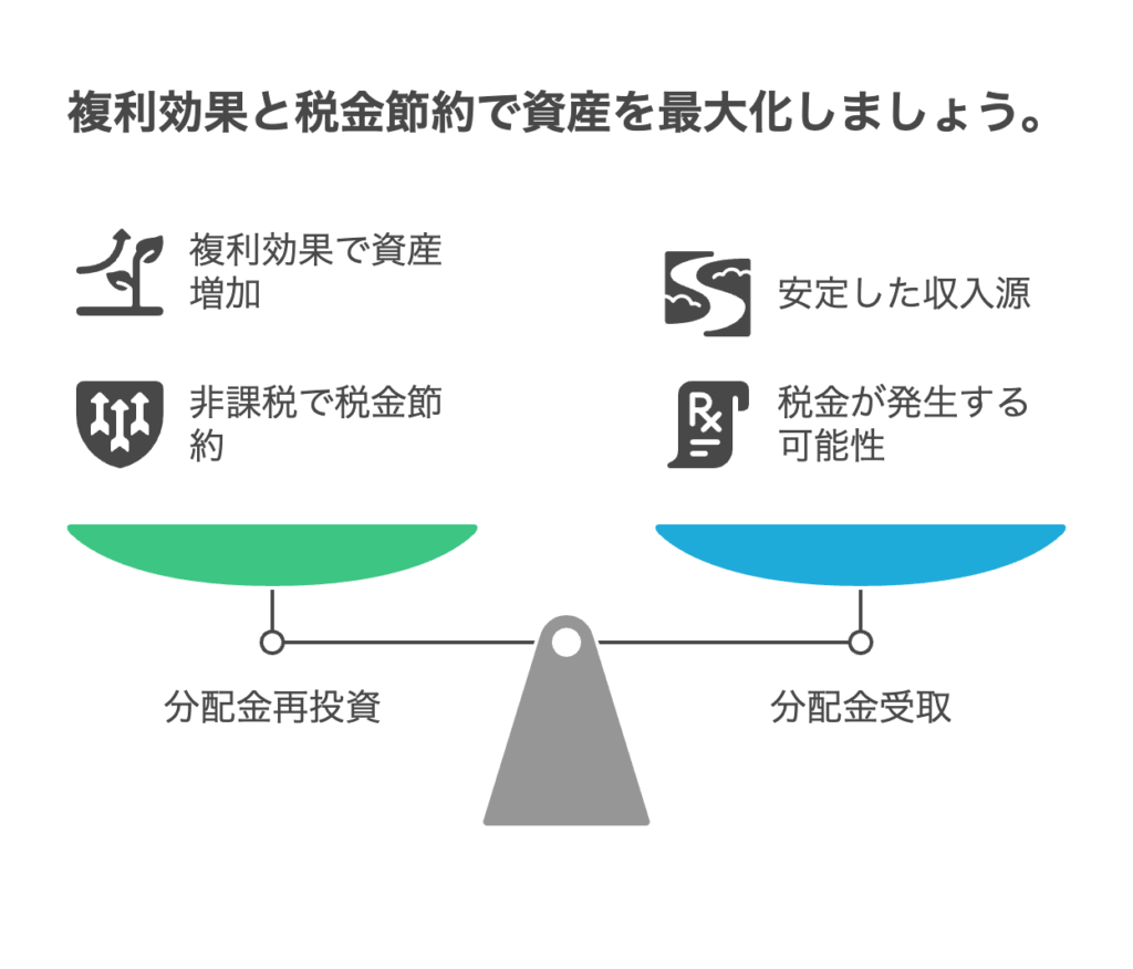 再投資型は、運用側で資産を売却して分配する必要がないため、売買コストや税処理を最小化できます。