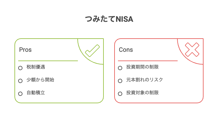 つみたてNISAは、非課税という大きなメリットがありますが、元本保証はなく基準価額の下落によって損失が生じるリスクがあります。